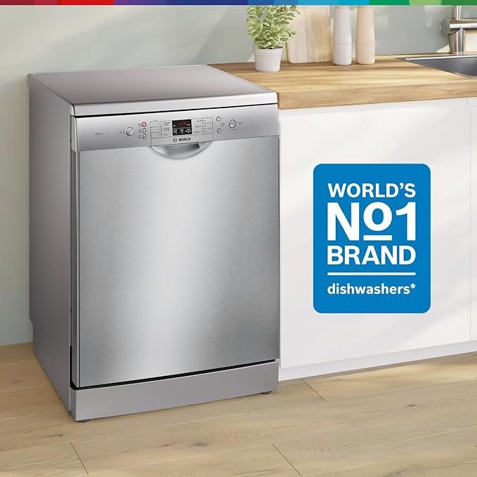 Bosch 13 Place Setting Dishwasher with Intensive Kadhai Program, No Pre-Rinse, 70⁰ Hot water wash, Half Load Option & Extra Cutlery Box – (SMS66GI01I, Silver, Glass Protection Technology)